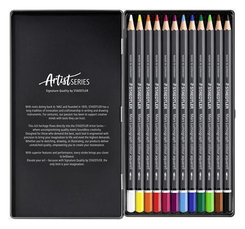 Akvarelové pastelky "Mars Lumograph 104", 12 barev, šestihranné, kovová krabička, STAEDTLER 104 M12