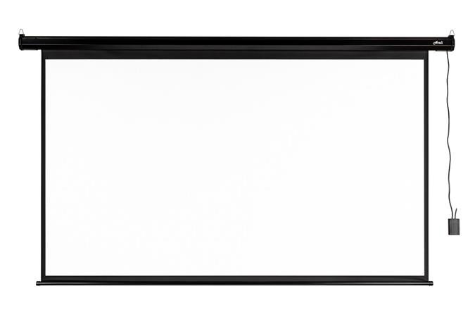 Popis Projekční plátno roletové, rozměr 204 cm × 115 cm, úhlopříčka 92", poměr stran 16:9, matně bílé plátno, černé okraje, černé tělo, k umístění na strop a na zeď, motor pro navíjení, s dálkovým ovládáním - Download