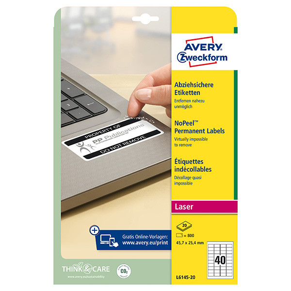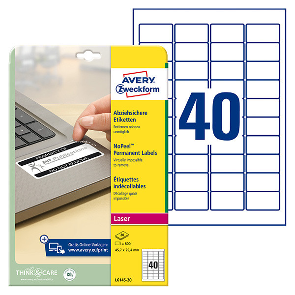 Avery Zweckform etikety 45.7mm x 25.4mm, A4, bílé, 40 etiket, permanentní, odolné vůči manipulaci, baleno po 20 ks, L6145-20, pro