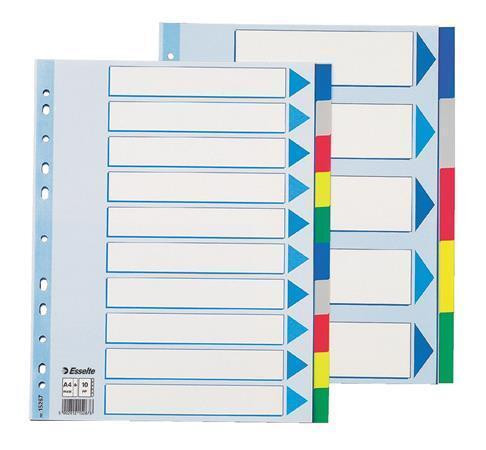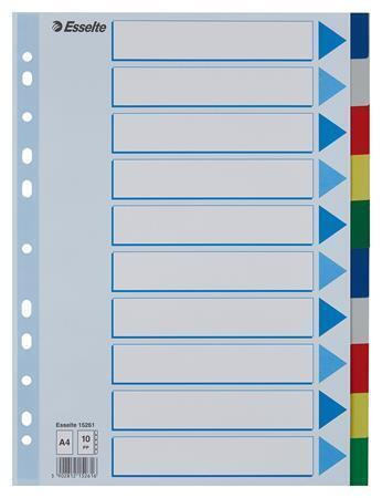 Barevné rozlišovače, mix barev, A4, plast, 10 dílů, ESSELTE