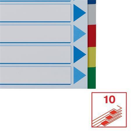 10 barevných rozlišovacích listů pro rychlou orientaci v obsahu. Univerzální multiperforace (11 děr) pro založení do pákového i kroužkového pořadače.