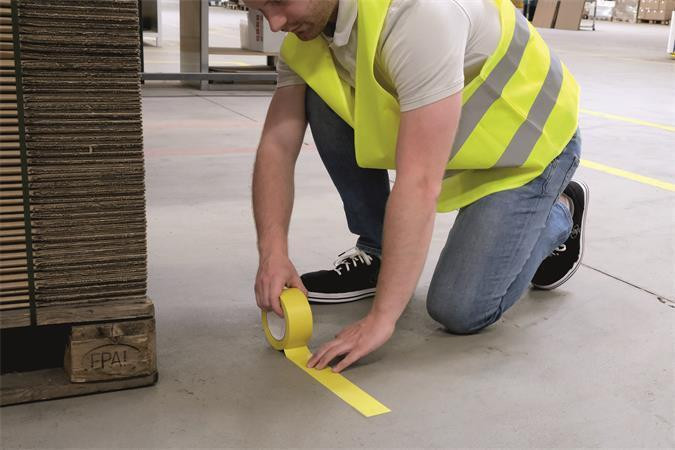 Samolepicí podlahová značkovací páska pro dočasnou identifikaci a značení stacionárních nebo pohyblivých předmětů a povrchů. Díky použití pryžového lepidla je páska z měkčeného PVC velmi přizpůsobivá.