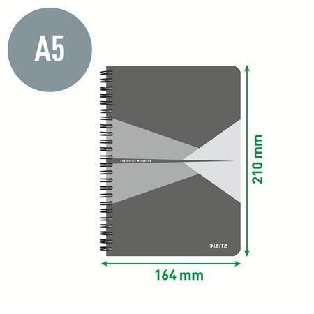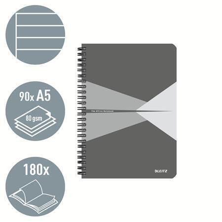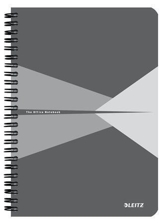 Blok "Office", šedá, drátěná kroužková vazba, A5, linkovaný, 90 listů, plastový povrch, LEITZ