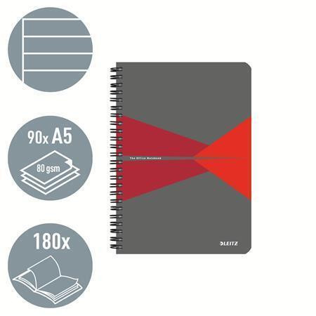 Blok "Office", šedo-červená, drátěná kroužková vazba, A5, linkovaný, 90 listů, laminovaný povrch, LE