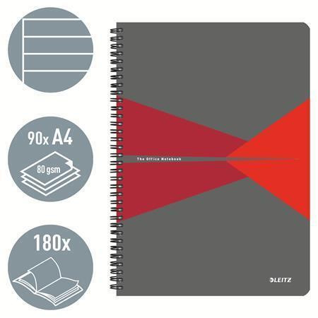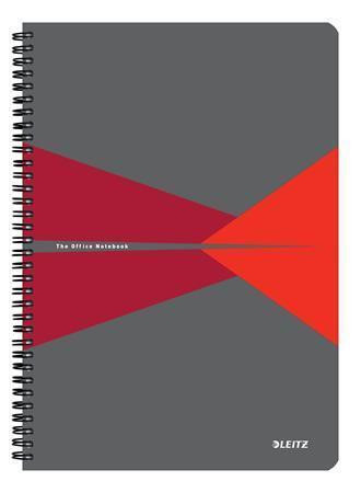 Blok "Office", šedo-červený, drátěná kroužková vazba, A4, linkovaný, 90 listů, plastový povrch, LEIT