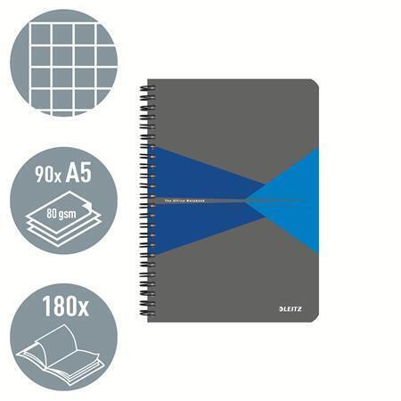 Blok "Office", šedo-modrý, drátěná kroužková vazba, A5, čtverečkovaný, 90 listů, plastový povrch, LE