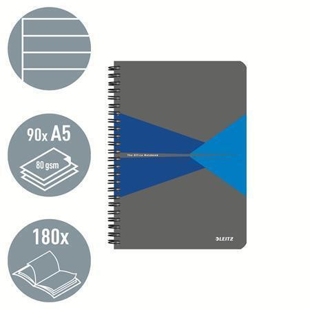 Blok "Office", šedo-modrý, drátěná kroužková vazba, A5, linkovaný, 90 listů, plastový povrch, LEITZ