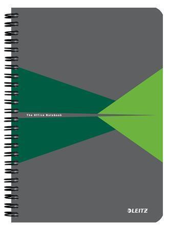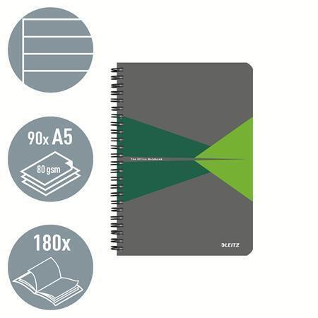 Blok "Office", šedo-zelená, drátěná kroužková vazba, A5, linkovaný, 90 listů, laminované desky, LEIT