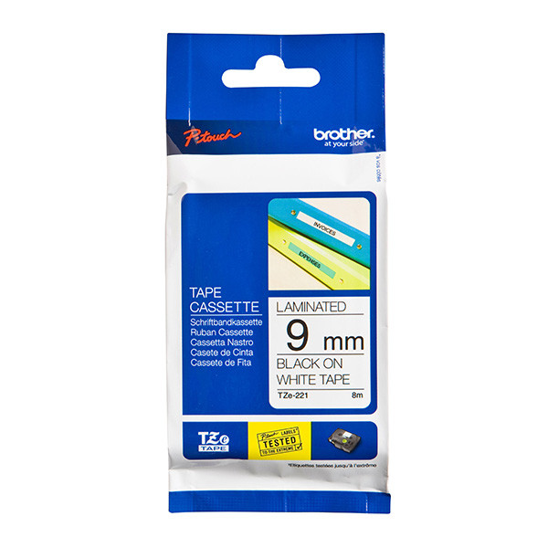 Brother originální páska do tiskárny štítků, Brother, TZE-221, černý tisk/bílý podklad, laminovaná, 8m, 9mm