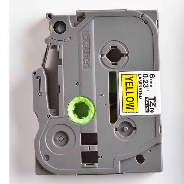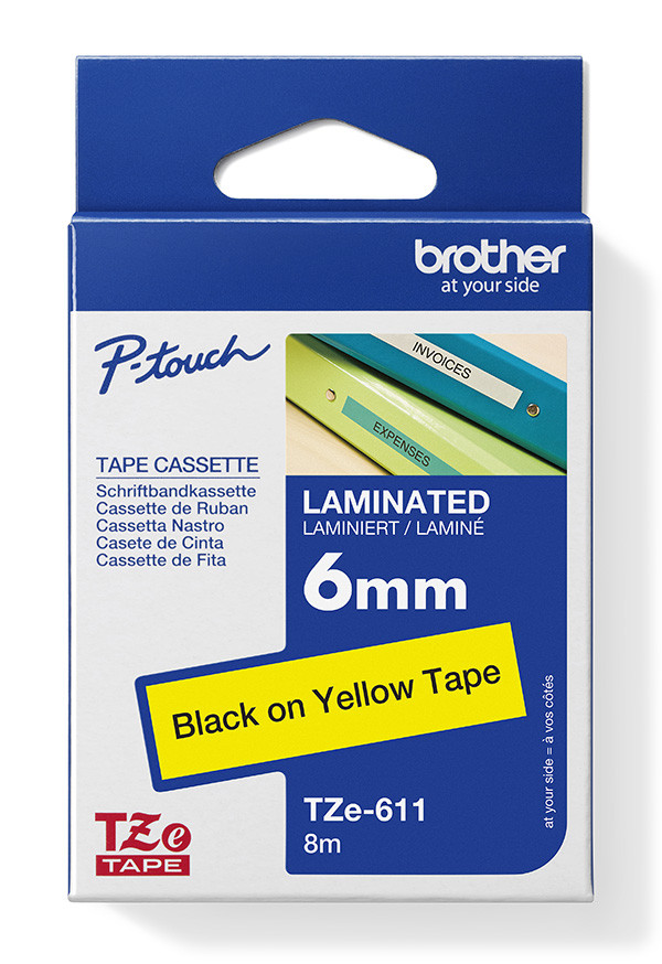 Brother originální páska do tiskárny štítků, Brother, TZE-611, černý tisk/žlutý podklad, laminovaná, 8m, 6mm