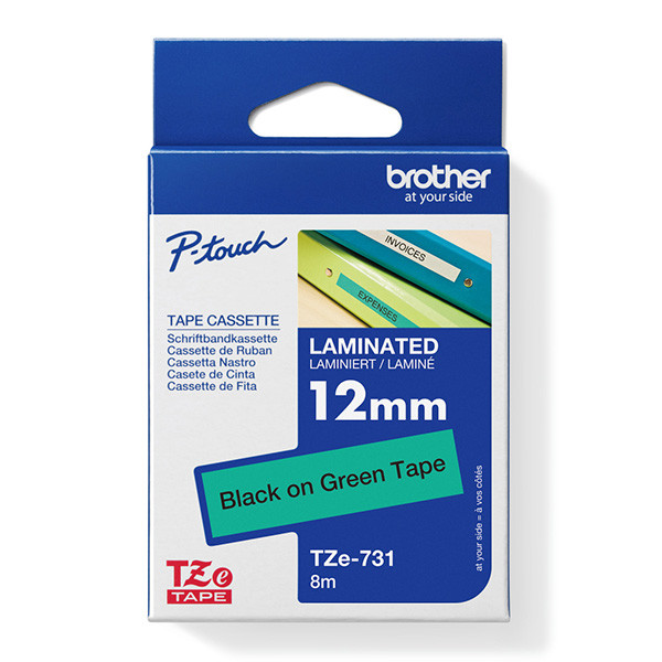 Brother originální páska do tiskárny štítků, Brother, TZE-731, černý tisk/zelený podklad, laminovaná, 8m, 12mm