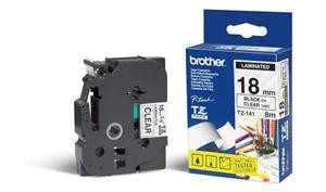 Brother - TZe-141, průsvitná / černá (18mm, laminovaná)