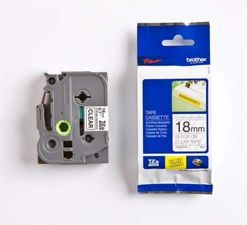 Originální kazeta s páskou Brother TZe-S141 - černý tisk na průsvitné, šířka 18 mm