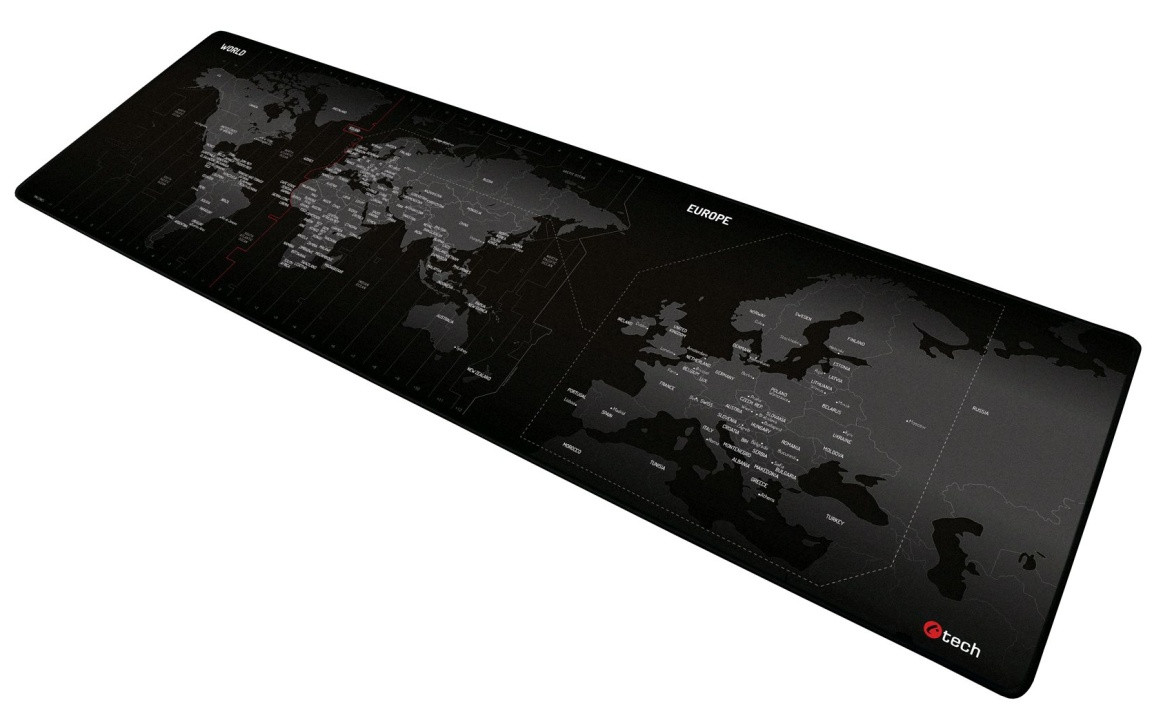 C-TECH podložka pod myš MP-01W (World) mapa světa, 900x270x4mm, obšité okraje
