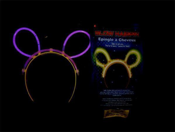Balení obsahuje: žlutou čelenku, 3 světelné tyčinky (náramek) a 3 adaptéry na náramek