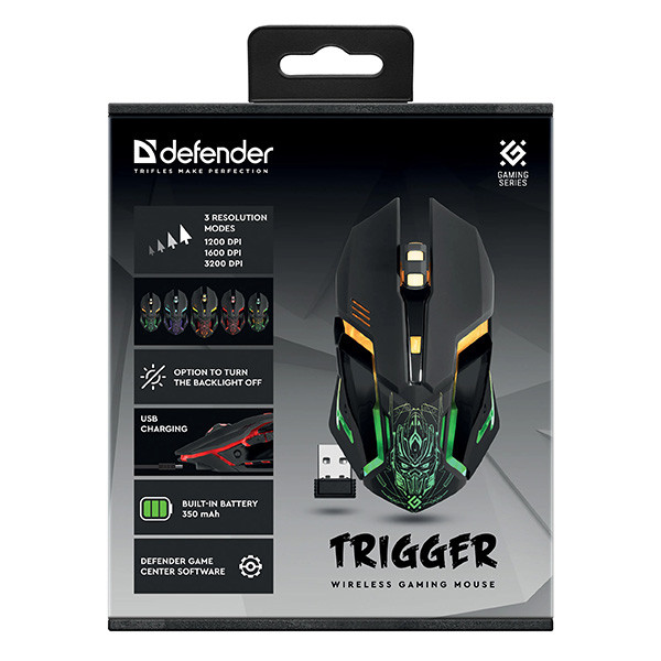 Bezdrátová herní myš Defender Trigger pracuje na frekvenci 2,4 GHz, což zaručuje spolehlivé a přesné ovládání na větší vzdálenost. Pokud se baterie blíží k vybití, stačí připojit USB kabel k vašemu počítači či laptopu pro její dobíjení. Díky použitým kvalitním materiálům je myš pohodlná i během dlouhých hodin hraní.