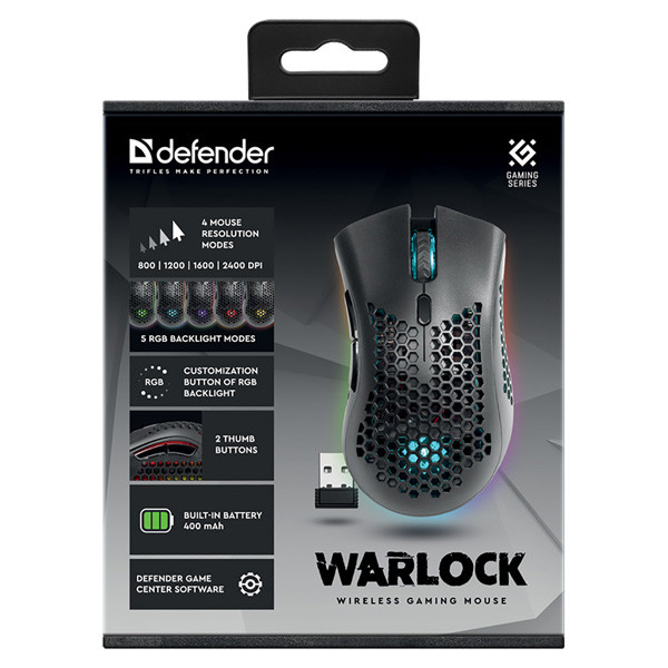 Tato bezdrátová herní myš Defender Warlock nabízí až 5 režimů podsvícení, které lze nastavit podle individuálních potřeb a Defender Game Center Vám pomůže nastavit vaše makra i všechny druhy barev. Vybrat si můžete až ze 4 režimů rozlišení. Kvalitní optický snímač pracuje na téměř každém povrchu - takže chybí pouze vybrat podložku dle vašich představ. Velmi zajimavý design a poměr cena/výkon pouze doplňují tuto herní myš k dokonalosti.