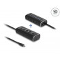 Delock 4 portový rozbočovač USB 10 Gbps s rozhraním USB Type-C™ a s konektorem, kabelem délky 60 cm a spínačem pro každý port