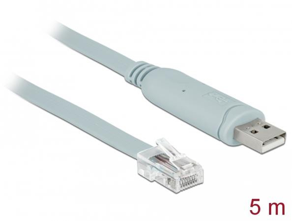 Delock Adapter USB 2.0 Type-A male > 1 x Serial RS-232 RJ45 male 5.0 m grey