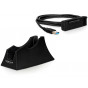 Dokovací stanice umožňuje externí připojení 2.5 nebo 3.5 SATA pevných disků přes USB rozhraní. Dokovací kabel je možné připojit i přímo na disk bez použití držáku. K ochraně disku na straně desky plošného spoje je možné použít kryty (součást dodávky), které se přišroubují na montážních děr na disku. Dále je možné pomocí dokovacího kabelu připojit Blu-ray nebo DVD mechaniku. Díky využití USB 3.0 standardu je možné dosáhnout přenosové rychlosti až 5 Gb/s (Super Speed). Pokud váš počítač nemá rozhraní USB 3.0, Pak je možné dokovací stanici připojit na rozhraní USB 2.0 nebo USB 1.1. Pak přenosová rychlost odpovídá možnostem tohoto rozhraní. Funkce zálohování pomocí stisku tlačítka (One-Touch Backup) umožňuje synchronizaci dat z počítače na disk pouhým stiskem tlačítka.