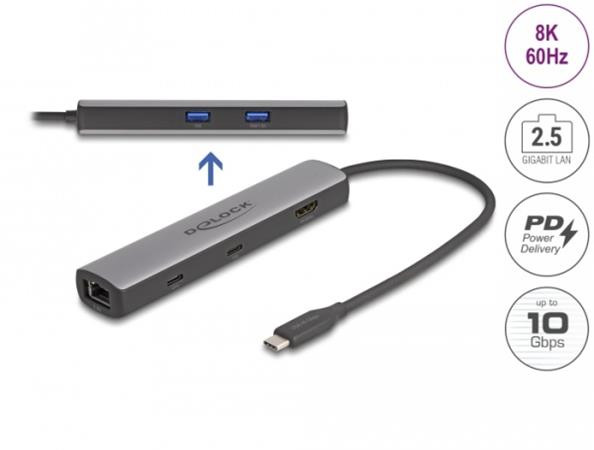 Delock Dokovací stanice USB 40 Gbps USB Type-C™ 8K - HDMI / USB 10 Gbps / 2,5 Gigabit LAN / PD 3.0 100 W