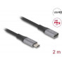 Delock Prodlužovací kabel USB 40 Gbps USB Type-C™ zástrčky na zásuvku PD 3.1 240 W 2 m šedá kovová