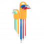 Sada imbusových klíčů NEO (ref. č. 09-512) vyrobená podle DIN 911. Sada obsahuje 9 klíčů o velikosti 1,5 až 10 mm v praktickém balení. Šestihranné kuličkové konce s pracovním úhlem až 30° zlepšují funkčnost nástrojů. Barevný kód usnadňuje výběr správné velikosti. Vysoce kvalitní legovaná ocel S2 zaručuje odolnost po léta používání klíčů. Certifikát TÜV, ISO 2936 a 25letá záruka výrobce potvrzují vysokou kvalitu nářadí. Značka NEO splňuje očekávání profesionálů.