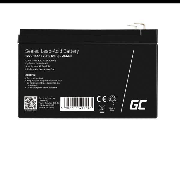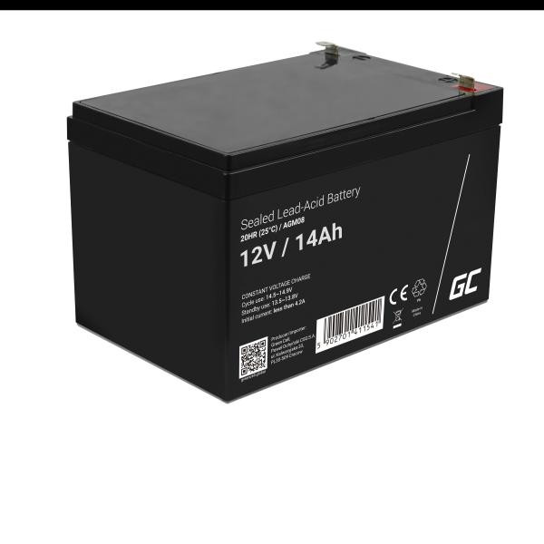 Výkonná 12V VRLA AGM baterie Green Cell s kapacitou 14Ah je ideální pro UPS systémy, nouzové osvětlení, alarmy a další zařízení vyžadující stabilní napájení. Nabízí dlouhou životnost až 5 let, bezúdržbový provoz a standardní konektor Faston 250 (F2) pro snadnou instalaci.