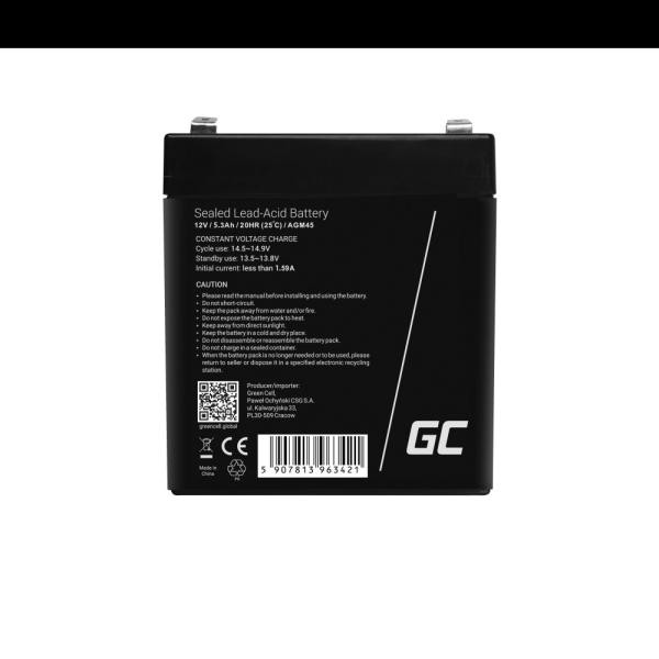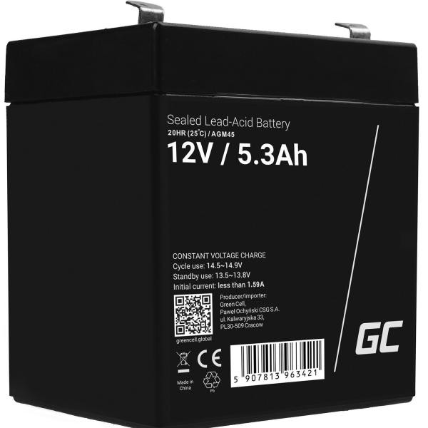 Green Cell bezúdržbová baterie AGM VRLA 12V 5.3Ah pro alarmové systémy, pokladny a hračky
