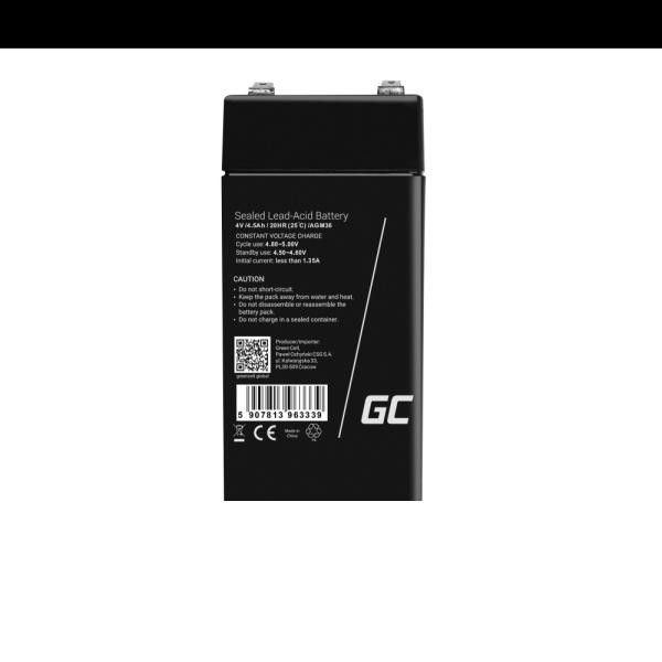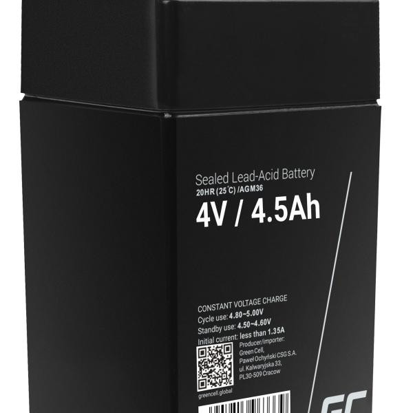 Green Cell bezúdržbová baterie AGM VRLA 4V 4.5Ah pro alarmové systémy, pokladny a hračky