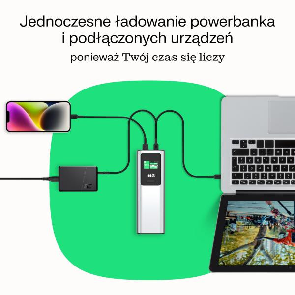 Greencell powerbanka 25200mAh 140W PD USB-C s rychlým nabíjením pro Laptop, MacBook, iPhone 16 15 14 max, Samsung Galaxy S25