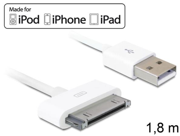 Delock USB napájecí a datový kabel iPod, iPhone, iPad, bílý, 1,8m