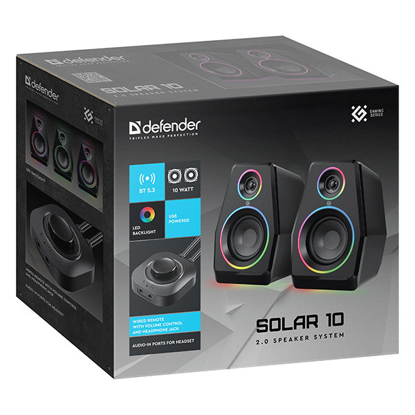 Defender Solar 10 přináší stylový design, působivé osvětlení a skvělý zvuk v kompaktním balení. Ať už si chcete užít oblíbenou hudbu, plně se ponořit do hry nebo sledovat filmy s kvalitním zvukem, tyto reproduktory jsou perfektní volbou pro každého, kdo hledá spojení estetiky a výkonu.
