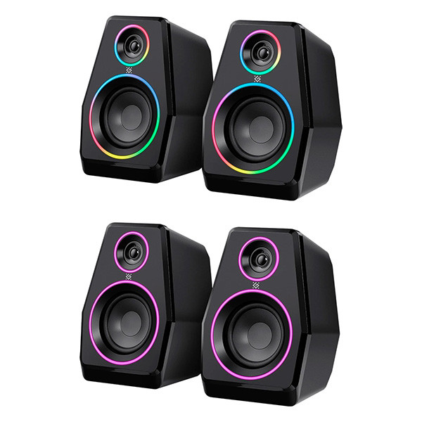 Nechte se vtáhnout do atmosféry díky RGB rainbow podsvícení, které dodává reproduktorům jedinečný vizuální efekt. Barevné světelné efekty plynule přecházejí mezi různými odstíny a vytvářejí dokonalou kulisu pro každou hudební i herní session. Světelný efekt lze snadno přizpůsobit podle nálady nebo zcela vypnout.