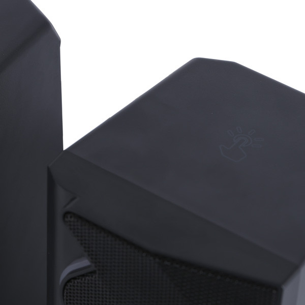 Stisknutím tlačítka na horní straně reproduktoru si volíte,zda chcete podsvícení vypnout nebo zapnout, můžete si také určit intenzitu podvísení. Reproduktory nabízí podsvícení 7 barev s duhovými efekty.