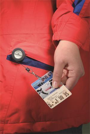 Výsuvný držák s karabinou vhodný pro přichycení jmenovek, průkazů, klíčů, apod.