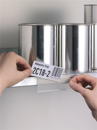 Vlastnosti: samolepicí, boční a horní otevírání, snadné vkládání i vyjímání štítků, lze dle potřeby zkrátit na požadovanou velikost