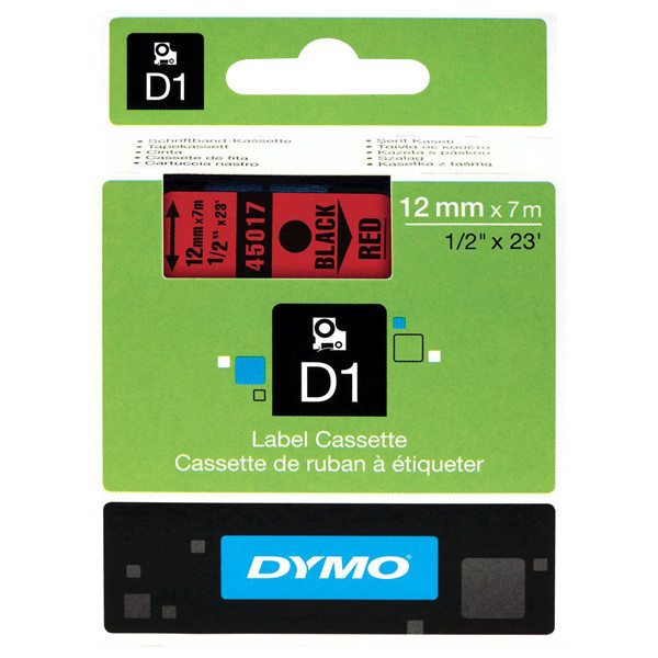 Dymo originální páska do tiskárny štítků, Dymo, 45017, S0720570, černý tisk/červený podklad, 7m, 12mm, D1