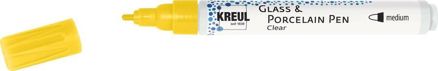 S fixy KREUL Glass & Porcelain Pen Clear mohou kreativci psát, kreslit a malovat na hrnky, sklenice, vázy, misky na cereálie a další předměty podle své fantazie. Transparentní barva na sklo a porcelán ve fixu je na vodní bázi a je ideální pro dekorativní zdobení skla, porcelánu, keramiky, kovu, akrylátu a zrcadel.