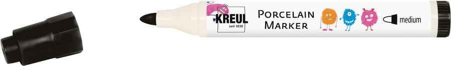 Cool, příšerkové motivy na hrncích a talířích? To je hračka. S KREUL Porcelain Marker medium mohou děti od 6 let popustit uzdu fantazii a malovat na porcelán i sklo. A mohou začít hned – fixy není potřeba protřepávat ani pumpovat. Přitom jde o barvu vhodnou pro děti. Složení barvy bylo dermatologicky testováno a je veganské. Navíc má udržitelný design: plast použitý na fixu obsahuje 60 % recyklovaného plastu. Promyšlená kvalita vyrobená v Německu. Tak jdeme na to: nakreslete výrazné a syté motivy, nechte barvy zaschnout a poté je zafixujte v běžné domácí troubě. Hotovo!