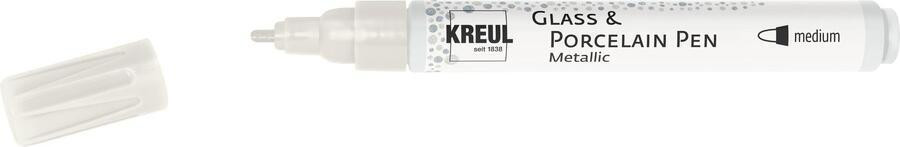 S fixy KREUL Glass & Porcelain Pens Metallic mohou kreativci psát, kreslit a malovat na hrnky, sklenice, talíře, vázy, misky na cereálie apod. Zářivé, metalické barvy na sklo a porcelán ve formě fixu jsou na vodní bázi a jsou ideální pro dekorativní designy na sklo, porcelán, keramiku, kov, akryl a zrcadla. V kombinaci s barvami KREUL Glass & Porcelain Classic ve 20ml skleničkách získají zdobené předměty nový lesk a výraz.
