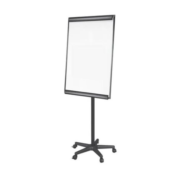 • Flipchart s lakovanou magnetickou popisovatelnou tabulí je díky kolečkovému systému lehce pohyblivý; kolečka je možné zabrzdit pro snazší psaní na tabuli