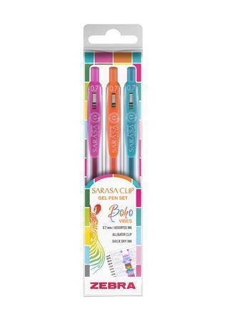 Gelové pero "Sarasa Clip Boho Vibes", 3 různé barvy, 0,33 mm, stiskací mechanismus, ZEBRA 99432