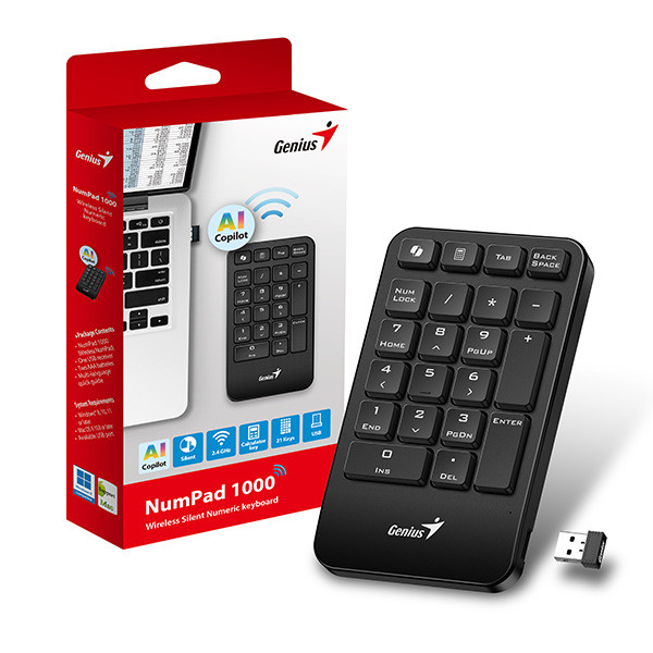 Genius NumPad 1000 COPILOT numerická klávesnice bezdrátová černá