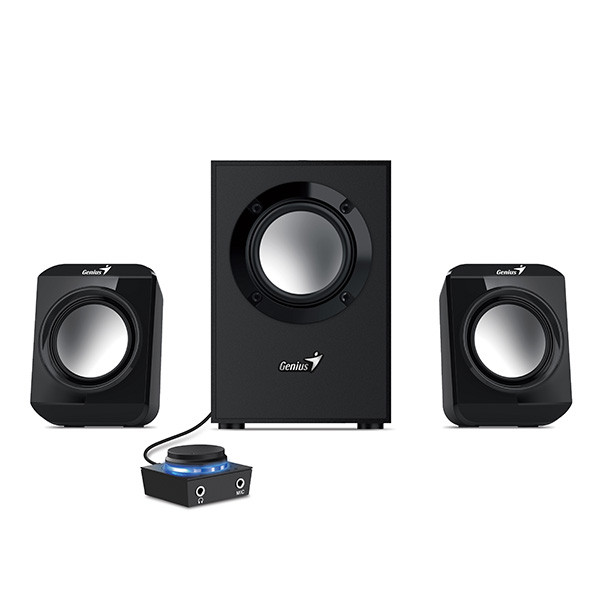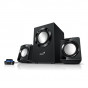 Multimediální reproduktorový systém v konfiguraci 2.1 s celkovým výkonem 10 W. 3" subwoofer nabízí dokonale hluboké basy a dva 2,5" satelity zajistí vysoké vokály. Potěší také ovládání hlasitosti, výstup pro sluchátka a vstup pro mikrofon na podsvíceném ovládacím modulu.