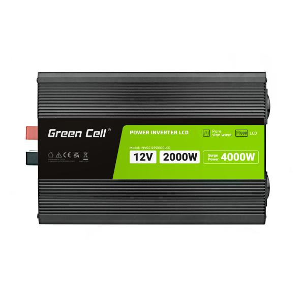 Green Cell PowerInverter LCD 12 volt 2000W/40000W měnič napětí do auta s displejem - čistá sinusová křivka