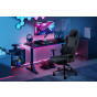Nábytek je vybaven ergonomickou opěrkou hlavy a speciální bederní opěrkou. Oba prvky jsou připevněny pomocí silných magnetů, což zajišťuje rychlou a stabilní instalaci na opěradlo židle. Nabízejí také výškové nastavení, které umožňuje perfektní přizpůsobení výšce a tvaru těla uživatele. Opěrka hlavy pomáhá udržovat správné držení těla, snižuje napětí v krku a předchází bolesti. Celý kus je v klasické černé barvě, což zajišťuje všestrannost a snadnou integraci s estetikou židle ULTRADESK OVERLORD.
