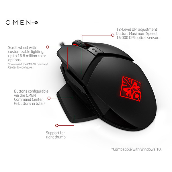 Přizpůsobte si osvětlení a efekty s výběrem až 16,8 milionu barevných možností přes OMEN Command Center. Přizpůsobte si svůj způsob hraní pomocí šesti programovatelných tlačítek myši, včetně změny rozlišení DPI za pochodu.