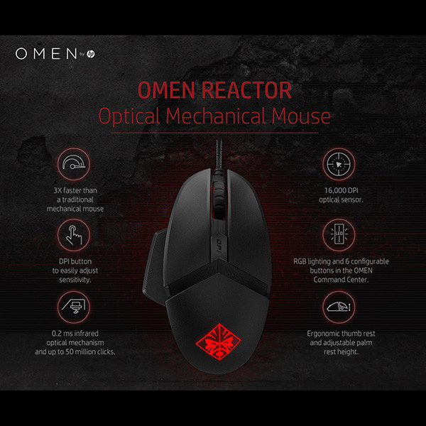 HP OMEN Reactor Myš drátová, černá, 16000DPI