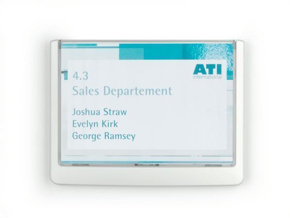 Moderní informační tabulka pro značení dveří. Ideální pro místa, kde je nutné často měnit informace.